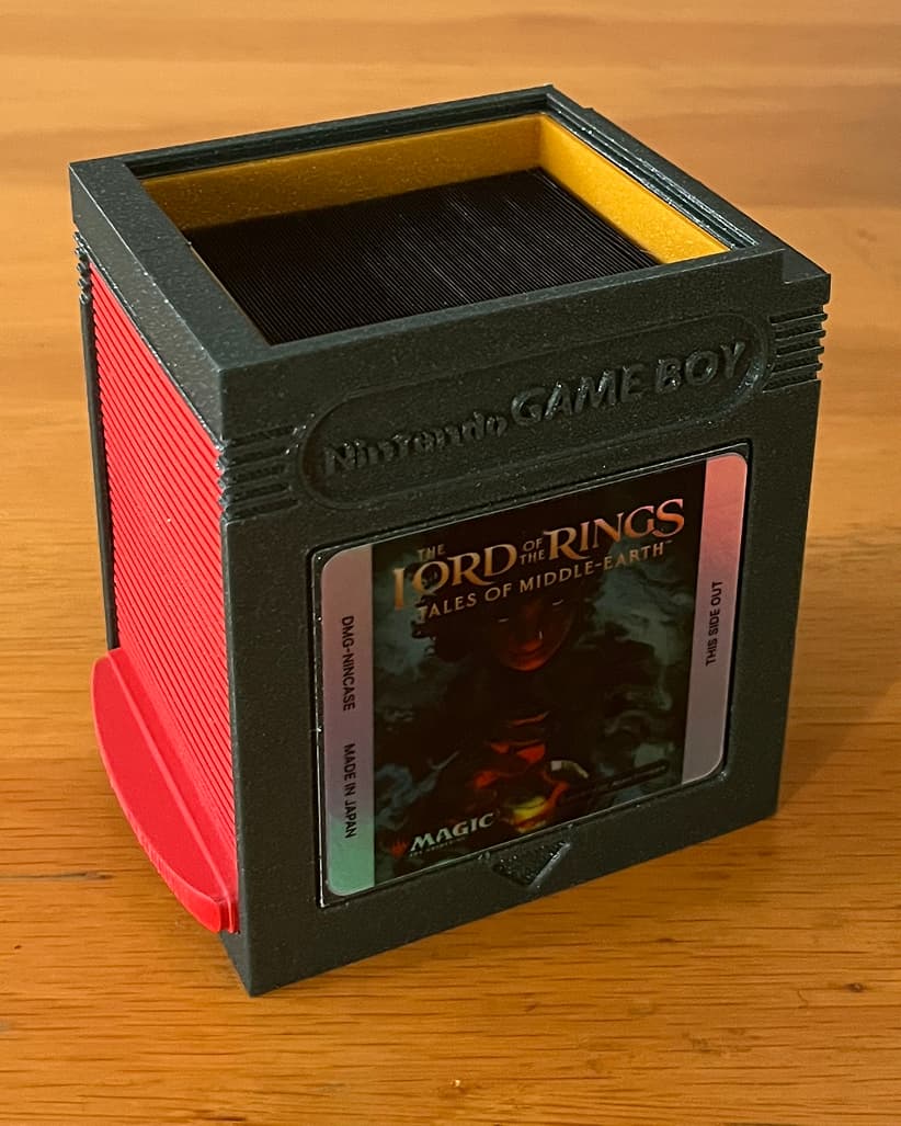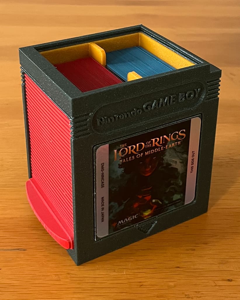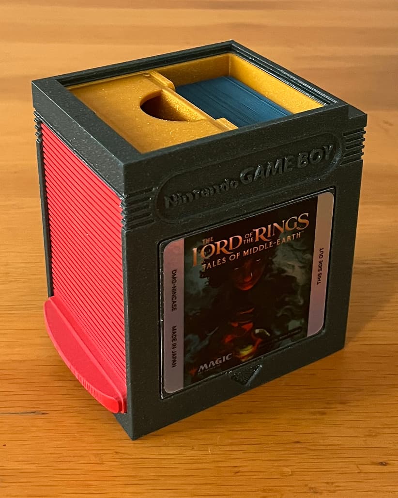 Your decks deserve better than a generic box. Game Boy cartridge design with three configurations: Commander, two decks, or deck with token box.